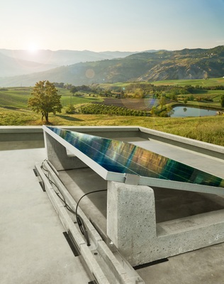 Das Connect-System ist ein kollaboratives System, weil es nur aus miteinander verbundenen Ballasten besteht: einer Front, einer Zentrale und einem Terminal, das die Plattenreihen schließt. Die Verbindung zwischen den Reihen wird durch die gleichen Ballaste gewährleistet, daher sind die Plattenreihen alle miteinander verbunden und miteinander integriert. So entsteht ein Netz aus Ballast und Paneelen, das extrem einfach und schnell zu installieren, windwiderstandsfähig und mit sehr geringen Lasten beständig und gleichmäßig über das gesamte Dach verteilt ist (max. 20-25 kg / m2, einschließlich des Gewichtes der Paneele). Die Stabilität und Windwiderstand des Connect-Systems waren Gegenstand zahlreicher Studien und Tests, insbesondere Windkanaltests und strömungsdynamischen Analysen in unabhängigen Labors. Die Ergebnisse sprechen von einem Windwiderstand von über 180 km/h, und einer sehr einfachen Montage, die im Vergleich zu herkömmlichen Aluminiumkonstruktionen 70% weniger Zeit in Anspruch nimmt, was zu erheblichen Kosteneinsparungen führt.
