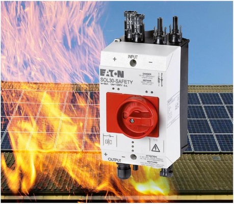 Auch auf der diesjährigen Intersolar war die Sicherheit für Einsatzkräfte ein großes Thema. Eaton Moeller beispielsweise hatte bereits auf der Intersolar 2009 das Modell eines feuerfesten Notausschalters für Photovoltaikanlagen gezeigt, was allerdings weitgehend unbemerkt blieb. Der 2010 in serienreifer Ausführung präsentierte sogenannte Feuerwehrschalter Sol30-Safety bekam deutlich mehr Aufmerksamkeit. Dabei handelt es sich um einen DC-Lasttrennschalter, der in unmittelbarer Nähe der Solarmodule in die Gleichstromleitung zum Wechselrichter eingefügt wird. Ein integrierter Unterspannungsauslöser soll dafür sorgen, dass die Leitung mit Hilfe eines Not-Aus-Tasters spannungsfrei geschaltet werden kann. Auch wenn die Feuerwehr – wie im Brandfall üblich – das komplette Haus vom Stromnetz trennt, soll dies automatisch den Feuerwehrschalter auslösen und somit die Gleichstromleitungen spannungsfrei machen.
