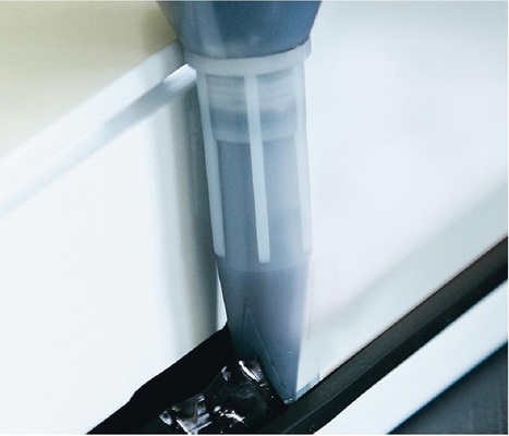 Neben der Beständigkeit sind auch die Verarbeitungseigenschaften ganz entscheidend dafür, welcher Kleber sich für welche Anwendung eignet. „Wir können kein Produkt nehmen, das in fünf Minuten ausgehärtet ist, aber der Produktionsprozess hat eine Taktzeit von vier Minuten. Das funktioniert nicht“, erläutert Scheiwiller. Andererseits darf beispielsweise ein Kleber, mit dem eine Anschlussdose ausgegossen wird, nicht hart werden, bevor sich die Masse gleichmäßig verteilt hat. Wie viel Zeit ein Kleber hat, bis er nicht mehr verarbeitet werden kann, auch das lässt sich genau messen. Bei Zweikomponentenklebern nennen es die Experten die Topfzeit, bis der Kleber aus dem Fluss erstarrt. Beim Einkomponentenkleber ist es die Zeit bis zur Hautbildung. Einkomponentenkleber werden hauptsächlich draußen bei der Montage angewendet, weil ein Zweikomponenten-System auf einer Baustelle schwer zu handhaben ist. Die Zweikomponentenkleber sind dem Innenbereich vorbehalten. „Die Zweikomponentenkleber werden hauptsächlich in der Produktion angewendet“, erläutert Scheiwiller. „Wenn Sie also bei der Produktion als letzten Schritt vor der Verpackung kleben, zum Beispiel bei Backrailverklebungen, dann setzen Sie Zweikomponentenkleber ein.“