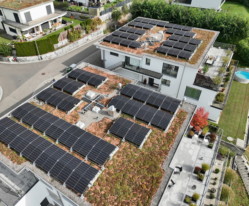 Gründächer werden in immer mehr Städten und Gemeinden baurechtlich gefordert. Im Neubau ist die Dachbegrünung schon fast gang und gäbe. Doch gleichzeitig soll auch Photovoltaik aufs Dach. Die Hauseigentümer können mit cleveren Lösungen das eine tun, ohne das andere zu lassen. Denn längst gibt es Lösungen, um neue und bestehende Gründächer mit der Photovoltaik zu vereinen.