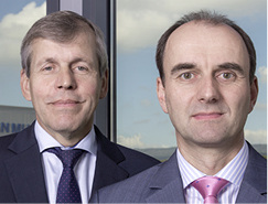 Stefan Gutting (rechts) wurde vom Stiftungsrat von Jean Müller zum kaufmännischen Geschäftsführer bestellt. Sein Vorgänger Hartmut Oehrn schied aus Altersgründen aus. Nach dem plötzlichen Tod von Bernhard Müller im Mai dieses Jahres führt er nun gemeinsam mit Rainer Berthold (links) das Unternehmen, der die Bereiche Vertrieb und Technik leitet. Beide sehen die vielen Facetten der Energiewende als Herausforderung für das Unternehmen, das Produkte für die Energieverteilung herstellt.