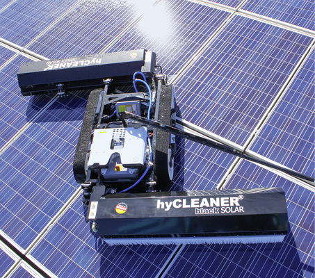 Das System reinigt schnell und zuverlässig, es ist mit wenigen Handgriffen bedienbar. Die Reinigung erfolgt ausschließlich mit Wasser und der Reinigungsbürste (400 Umdrehungen pro Minute). Die Funkfernsteuerung erlaubt es dem Bediener, die Maschine präzise und ohne körperliche Anstrengung über die Paneele zu bewegen.