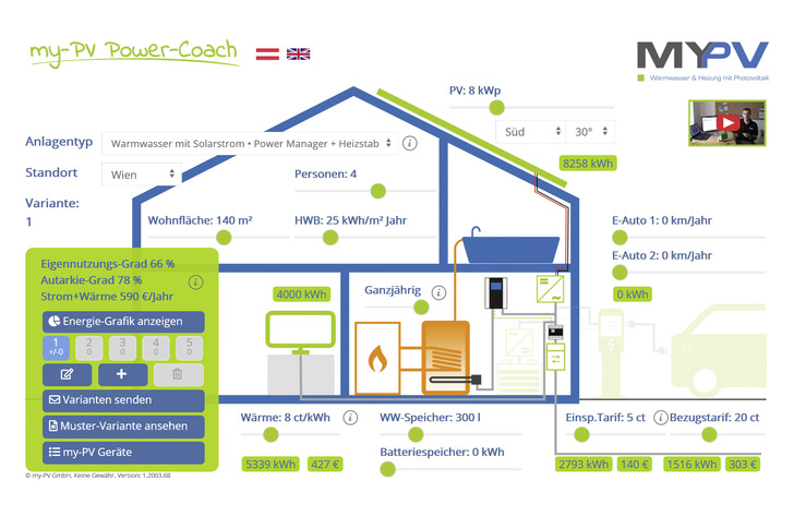 Mit dem neuen Beratungstool Power Coach der österreichischen Firma My-PV können Privatpersonen, Fachhandwerker, Planer und Energieberater den Eigenverbrauch von neuen oder bestehenden Solarstromanlagen erhöhen.