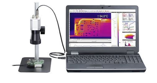 Die Infrarotkameras mit Mikroskopoptik werden im Set inklusive einer Tischhalterung geliefert. Sie werden über USB mit einem Rechner verbunden. Die gute thermische und geometrische Detailauflösung der Infrarotkameras ermöglicht es, kleinste Temperaturdifferenzen zu erkennen und somit eine effektive und präzise Funktionsprüfung von Elektronikprodukten durchzuführen. So können Hotspots schneller gefunden werden.
