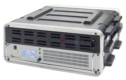 Das Servicenetzteil pvServe von Photovoltaikbüro wurde entwickelt, um einzelne Modulstrings gezielt zu bestromen. Dadurch lassen sich zum Beispiel Thermografieaufnahmen zum Aufspüren von Hotspots durchführen, ohne auf die normalerweise notwendige Mindesteinstrahlung von 400 Watt pro Quadratmeter angewiesen zu sein. Im Verbund mit einer Infrarotkamera können mit dem Servicetool Elektrolumineszenzaufnahmen gemacht werden, um feine Mikrorisse in den Solarzellen zu erkennen. Schließt man das Netzteil verpolt an einen abgedunkelten Solargenerator an, ist eine Überprüfung der Funktion aller Bypassdioden eines Strings möglich. Das Gerät lässt sich auch verwenden, um den Wechselrichter in Betrieb zu nehmen, ohne dass der Solargenerator bereits installiert sein muss. Das Servicenetzteil liefert eine frei einstellbare Gleichspannung zwischen null und 1.000 Volt. Die maximale Stromstärke liegt bei fünf Ampere. Das Gerät ist auf eine Maximalleistung von 3,3 Kilowatt begrenzt, damit es an einer konventionellen 230-Volt-Steckdose betrieben werden kann.