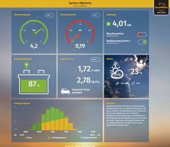 Zur Visualisierung und Steuerung hat Solarworld eine neue App namens Suntrol My Home entwickelt. Mithilfe dieses Energiemanagementportals werden Anlagenertrag, aktueller Stromverbrauch und eingespartes Kohlendioxid auf dem Smartphone oder iPad veranschaulicht. Der E-Manager entscheidet, wann der Strom selbst verbraucht, gespeichert oder eingespeist wird. Steht überschüssiger Solarstrom zur Verfügung, informiert Suntrol My Home, dass Elektrogeräte angeschaltet werden können.