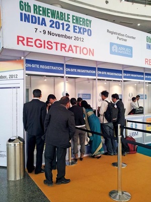 Wie die meisten Fachmessen für Photovoltaik und erneuerbare Energien im Jahr 2012 war auch die Renewable Energy India (REI) Expo kleiner als in den Vorjahren. Sie zählte laut Veranstalter UBM 475 Aussteller – darunter viele chinesische Tier-2- und Tier-3-Hersteller – und 12.000 Besucher. Dabei ist REI keine reine Solarveranstaltung, auch Geothermie- und Windkraftproduzenten sind vertreten. Und trotz des Rückgangs im Jahr 2012 bleibt REI die größte Photovoltaikmesse in Indien. Platz zwei belegt die Intersolar India, die in diesem Jahr zeitgleich in Mumbai stattfand. Dort zählte der Veranstalter Solar Promotion 200 Aussteller und 7.300 Besucher.