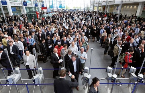 So wie der Centrosolario immer guter Laune scheint, es sei denn, er wird von Atommüll getroffen, trübte auch eine schleppende Nachfrage im ersten Quartal und Förderkürzungen in wichtigen Absatzmärkten wie Italien, Großbritannien, Frankreich und Deutschland die Stimmung auf dem neuen Messegelände in München erstaunlicherweise nicht. Zwar war das Gedränge an manchen Ständen nicht ganz so dicht wie im vergangenen Jahr, doch hat dies weniger mit geringerem Interesse als mit der größeren Ausstellungsfläche zu tun. 2.280 Aussteller präsentierten sich vom 8. bis zum 10. Juni auf 168.000 Quadratmetern in 15Hallen sowie dem Freigelände, ein Zuwachs gegenüber dem Vorjahr um 21 Prozent. 77.000 Besucher zählten die Veranstalter, im Vorjahr waren es 72.000. Damit hat die diesjährige Intersolar Europe – was die Zahl der Aussteller angeht – ihre Spitzenposition bei den weltweiten Solarmessen gegenüber der SNEC PV in Shanghai verteidigt.