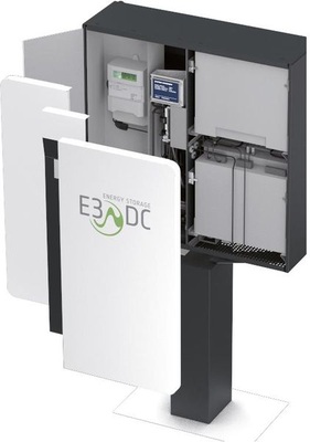 Zusatznutzen in einer anderen Beziehung bietet Diehl Ako mit dem Platinum Webmaster Home an. Das Gerät kann wieeinige andere Systeme über Funksteckdosen Waschmaschinen, Geschirrspüler und weitere Verbraucher so ein- und ausschalten, dass der Eigenverbrauchanteil möglichst groß ist. Darüber hinaus hat es Zusatzmodule wie Funktaster und Dimmer, so dass man leicht und ohne zusätzliche Kabel zusätzlich Schalter und Dimmer einbauen kann.Als offensiver Newcomer in der Solarbranche präsentierte sich der Hersteller E3/DC aus Osnabrück. Er hat es mit seinem Speichersystem auf Anhieb unter die nominierten des Intersolar Award geschafft. Das Gerät ist ein kompakter Kasten, ein mal ein Meter Frontfläche, 39 Zentimeter tief, der wie ein großer Zählerkasten aussieht. Darin sind der Produktionszähler für den Solarstrom, ein Vier-Kilowatt-Wechselrichter von Solutronic, der Laderegler, die Energiemanagementsteuerung und Batteriemodule untergebracht. E3/DC nutzt Lithium-Ionen Batterien von Sanyo, was nach Ausage von Geschäftsführer Andreas Piepenbrink Grund dafür sei, dass das System wirtschaftlich ist. Um wirtschaftlich zu sein, müssten die Batterien in großen Stückzahlen und gleichzeitig möglichst homogen hergestellt werden, so dass man sie parallel schalten kann.
