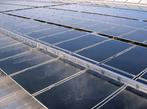 Das Unternehmen Schneerutsch und Futsch hat ein Reinigungssystem entwickelt, das mit Spraydüsen und Bürsten Solarmodule vom Schmutz befreit. Das fest installierte Spray-Away-System besteht aus einem mit Wasser gefüllten Profilrohr, das über ein Seilsystem vertikal über die Modulfläche gezogen wird. Dabei wird es von Seitenführungen in Position gehalten. Der Schmutz wird unter Druck mit Regenwasser ohne chemische Zusätze abgewaschen. Die Reinigung lohne sich vor allem bei landwirtschaftlichen Gebäuden und Freilandflächen, weil Futterstaub oder Sandstürme die Module schnell verschmutzen können.