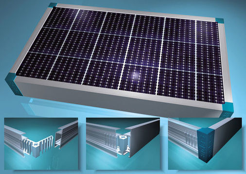 Die Firma Sapa stellt auf der Intersolar einen Modulrahmen aus Aluminiumprofilen vor. Der Rahmen hat genau abgestimmte Eckverbinder, mit denen die auf 90 Grad gesägten Profile miteinander verbunden werden. Die Rahmenprofile müssen laut Sapa nicht weiter bearbeitet werden und haben auch keine scharfkantigen Gehrungsecken. Der Rahmen hat einen integrierten Wasserablauf und im Eckverbinder einen Schraubkanal für die Befestigung der Erdungsschraube. Zusätzliche Bohrungen seien nicht notwendig. Der Modulrahmen ist für jede Modulgröße und -art geeignet und wird weltweit vertrieben. Des Weiteren kann der Rahmen kostenlos mit einem sogenannten Customer Branding beschriftet werden.