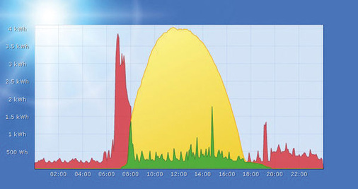 Das Unternehmen Solare Datensysteme zeigt auf der Intersolar sein Anlagenkontrollsystem Solar-Log. Es kann zusätzlich zur Stromproduktion auch den Stromverbrauch überwachen. Wird ein konfigurierbarer Schwellenwert überschritten, könnten bis zu vier Verbraucher gezielt ein- und ausgeschaltet werden. Damit das Haushaltsgerät auch startet, wenn der Himmel bewölkt ist und wenig Solarenergie zur Verfügung steht, kann eine späteste Einschaltzeit festgelegt werden, die mit einem Zufallsfaktor verknüpft werden kann, so dass nicht alle Verbraucher gleichzeitig starten und das Netz unnötig belasten. Das Überwachungssystem berechnet zudem die Eigenverbrauchsquote.
