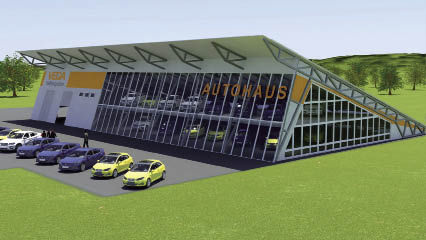 Die Firma SRU Solar stellt die Systemhalle Vega vor. Die Halle hat keine südliche Außenwand. Stattdessen führt SRU Solar das vollständig mit Modulen besetzte Dach unter einer Neigung von 18 bis 20 Grad bis zum Boden. Das Grundgerüst der Halle ist eine fachwerkähnliche Stahlkonstruktion aus grundiertem Stahl, das auf einem Einzelfundament aufgebaut ist. Es gibt drei Standardgrößen, die in der Länge mit sechs Meter langen Elementen erweiterbar seien. Die bisher größte Halle ist 254 Meter lang und 54 Meter breit. Die Halle gibt es sowohl als Kalthalle als auch als Warmhalle. Außerdem stellt der Hersteller einen Carport mit der Bezeichnung Solar Parking Station vor. Das System ist modular aufgebaut, die kleinste Einheit biete Platz für vier Autos.