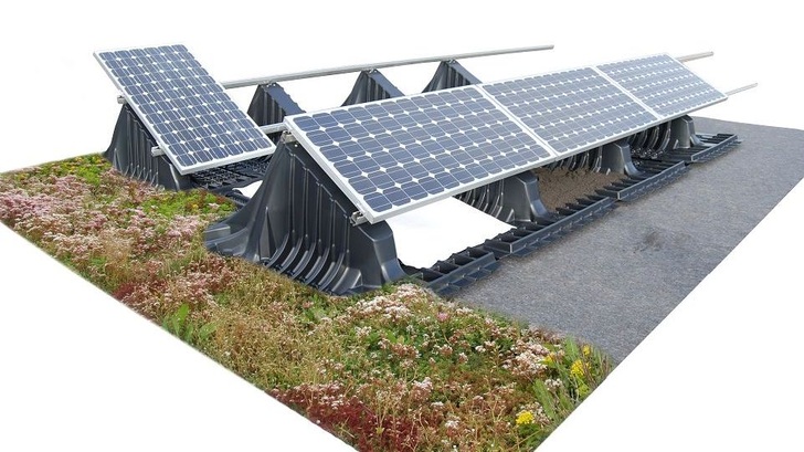 Das Solargründach ist so ausgelegt, dass enge Modulreihen und damit hohe Erträge auch auf kleinem Raum möglich sind. Da die Vegetation unterhalb der Module verläuft, können trotzdem große Anteile der Dachflächen begrünt werden. Der Gründachaufbau wirkt als Schutzschicht gegen Extremtemperaturen, UV- und IR-Strahlung, Hagel und Witterungseinflüsse. Die Lebensdauer der Dachabdichtung wird verdoppelt. Reparaturen und Sanierungsarbeiten fallen erst viel später an.