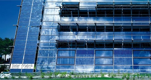 Wer eine Idee von der Solarzellenfabrik der Zukunft bekommen will, muss nach Freiburg fahren. Mit einer Kombination aus Photovoltaikanlage, einem Rapsöl-Blockheizkraftwerk und dem Ökostrom eines regionalen Energiedienstleisters stellt die Solar-Fabrik Solarmodule her, ohne dafür fossile Energieträger zu verwenden. Ließe sich diese Idee konsequent umsetzen, wären der solaren Energieversorgung kaum noch Grenzen gesetzt.