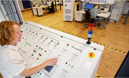 Das neue Testzentrum für Wechselrichter in Freiburg erstreckt sich über mehrere Stockwerke. Für das Labor hat das Institut einen eigenen Mittelspannungszugang bekommen. Es entnimmt dem Netz bis zu einem Megawatt an elektrischer Leistung und speist damit eine Gleichstromquelle, die einen Solargenerator simuliert. Damit kann ein Solarmodulfeld mit einer Fläche von bis zu zwei Hektar nachgeahmt werden. Der simulierte Solargenerator speist dann den Wechselrichter, dessen Ausgang die Energie wieder dem Netz zuführt. Im Normalbetrieb geht also kaum Energie verloren. Wenn Rogalla bei den Tests die Eigenschaften der Netzseite manipulieren muss, schaltet er die Drosselspulen im Keller in die Leitung zwischen Wechselrichter und Mittelspannungsnetz. Die Herausforderung war, die hohen Leistungen zu schalten. Ströme mit bis zu 2.200 Ampere müssen im Labor beherrscht und gemessen werden. Gleichzeitig wird das Verhalten des Wechselrichters beim Test exakt beobachtet. Dafür steckt das Labor zusätzlich voll mit Messelektronik.