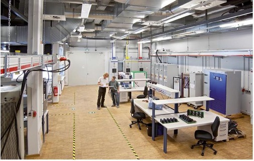 „So etwas gibt es nicht von der Stange“, erklärt Rogalla, als er vom Keller mit den Drosselspulen in das eigentliche Testlabor zwei Stockwerke darüber geht. „Das ist eine Einzelanfertigung.“ Drei Jahre haben er und seine Kollegen daran geplant und gebaut, bis sie es Anfang September in Betrieb genommen haben. Laut Rogalla ist es sogar das erste und bislang einzige Prüflabor Europas, das Photovoltaik-Wechselrichter mit Leistungen von bis zu einem Megawatt nach den Vorschriften der Mittelspannungsrichtlinie testen kann.