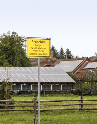 So auch in der Lausitz. Das kleine Dorf Proschim an der brandenburgisch-sächsischen Grenze, 30 Kilometer südöstlich von Cottbus, hat sich seine eigene Energieversorgung aufgebaut. Allein die fast 30 Photovoltaikanlagen mit einer Gesamtleistung von 850 Kilowatt produzieren fast 800 Megawattstunden Strom im Jahr.