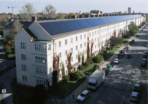 Ein Meer von Photovoltaikmodulen. Wer sich mit eigenen Augen davon überzeugen will, braucht bloß ins Münchner Bauzentrum im Osten der Stadt zu gehen. In der obersten Etage des Betonklotzes kann er den Blick über die Dächer der Neuen Messe München schweifen lassen. Module, wohin das Auge blickt. Denn auf den Messehallen in Riem befinden sich die wohl bekanntesten Photovoltaikanlagen Münchens mit insgesamt zwei Megawatt Leistung. Zurück auf der Straße, kommt der Solarinteressierte nicht nur auf den Boden im wörtlichenSinne, sondern auch auf den Boden der Tatsachen zurück.