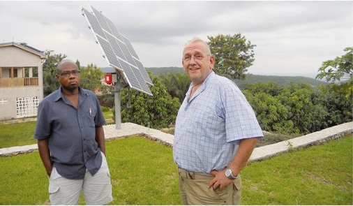 Angesichts dessen, dass bisher erst rund fünf Megawatt Photovoltaikleistung in Ghana installiert sind, meist in abgelegenen Landesteilen als Inselanlagen, ist Stephen Addae in mehrfacher Hinsicht ein Exot. Sein Beispiel zeigt jedoch, was alles möglich ist. Maßgeblichen Anteil daranhatte Henk Vermeer, Geschäftsführer der Energiebau-Sunergy Ghana und Vertreter von SMA in Westafrika. Er lieferte und installierte vor zwei Jahren die Anlage und verhandelte mit dem Netzbetreiber und den Behörden. Der gebürtige Holländer, der seit 13 Jahren in Ghana lebt, ist Berufsoptimist, pfiffiger Geschäftsmann und Solaraktivist. Wo andere – durchaus zu Recht – über hohe Bankzinsen, korrupte Beamte und Einfuhrzölle klagen, brachte er schon vieles auf den Weg. So belieferte er beispielsweise etwa 80 Kliniken unter kirchlicher Trägerschaft, die sich an der Aktion Lichtbox des deutschen Kindermissionswerks Sternsinger beteiligen, mit solar betriebenen Kühlschränken. Partner des Projekts ist unter anderem Schott Solar. Der technische Kundendienst läuft über die Elektriker der 20 katholischen Diözesen in Ghana.