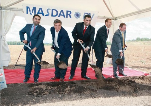 Selbst für den investitionsverwöhnten Solarstandort Thüringen sind die Pläne der Masdar PV GmbH etwas Besonderes. Im Mai 2008 gab das Unternehmen be-kannt, über eine Milliarde Euro in die Fertigung von modernen Dünnschicht-Solarmodulen investieren zu wollen. Und bereits Ende August rammte Sultan Al Jaber wenige Kilometer südlich der Landeshauptstadt Erfurt – in Sichtweite von Ersols im November eröffneter Waferfabrik – einen Spaten in die Erde und markierte so den Baubeginn der ersten Produktionsstätte. 150 Millionen Euro steckt Masdar in das deutsche Werk, das im dritten Quartal 2009 mit einer jährlichen Kapazität von 70 Megawatt die Produktion aufnehmen und 180 Arbeitsplätze in der Solarregion schaffen soll. Auf Anlagen von Applied Materials werden dann 5,7 Quadratmeter große PV-Module hergestellt.