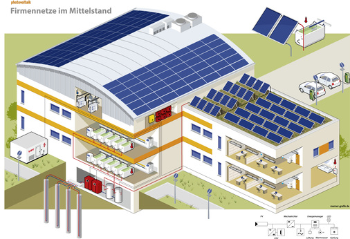 Für den Laien ist die technische Vielfalt der Solargeneratoren kaum überschaubar. Deshalb zeigen wir Ihnen und Ihren Kunden, wie anspruchsvolle Gebäude und ihre Nutzer mit Sonnenstrom versorgt werden. In jeder Ausgabe von photovoltaik erscheint eine neue Präsentationsgrafik – exklusiv für unsere Leser.