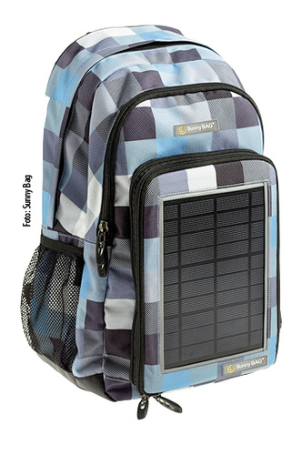 Der Rucksack School Bag bietet mit fünf Watt Paneelleistung genügend Power, um Handys, Action-Cams, Spielkonsolen, MP3-Player und Co. zu laden. Mit einer Größe von 42 mal 32 mal 18 Zentimeter und 25 Liter Volumen bietet der Rucksack genug Stauraum für einen Laptop und andere wichtige Utensilien für den Schulalltag. Wie alle Produkte von Sunny Bag kann auch der School Bag Mobiltelefone oder MP-3-Player unterwegs mit Sonnenenergie aufladen. Das integrierte Off-Grid-Solarsystem kann durch einfaches Abzippen abgenommen werden. So kann das komplette Powermanagement einfach und flexibel auch an anderen Taschen oder Rucksäcken per Karabiner befestigt werden. Der Rucksack verfügt zudem über ein spezielles Laptopfach und weitere zwei voneinander getrennte Fächer.