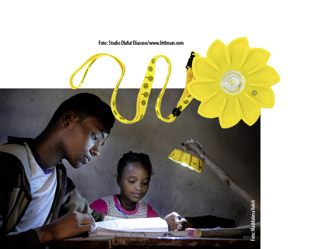 Die Little Sun verwandelt fünf Stunden Sonnenlicht in vier Stunden helles oder zehn Stunden gedämpftes Licht. Diese hochwertige tragbare Solarlampe wurde vom dänischen Künstler Olafur Eliasson zusammen mit dem Ingenieur Frederik Ottesen in erster Linie für Gegenden ohne Stromversorgung entworfen. Doch verkauft wird sie in aller Welt. Schließlich gibt es auch in unseren Breitengraden Campingabende, Gärten, Grillfeste und andere Outdooraktivitäten, bei denen Atmosphäre gefragt ist. Mit jeder von Little Sun zum Normalpreis verkauften Lampe wird außerdem ein vergünstigter Verkauf in Entwicklungsländern und Gebieten ohne Stromversorgung unterstützt.