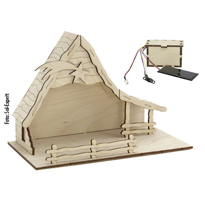 Dieser Sperrholzbausatz einer Weihnachtskrippe ist einfach zu montieren und lässt sich individuell ausschmücken oder auch bemalen.