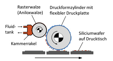 Vornehmlich geht es darum, den Verbrauch an Silber zu minimieren und den Durchsatz des Prozesses in der Zellfertigung zu erhöhen. Hier bietet sich der Übergang zum Rotationsdruck an, vergleichbar dem Rollendruck von Zeitungen. Speziell für Solarzellen kommen Verfahren wie Flexodruck, Rotationssiebdruck und indirekter Tiefdruck in Betracht. Trotz der schnellen Druckmaschinen muss es gelingen, die feinen Metallisierungslinien und Kontaktfinger so präzise wie notwendig auf den vorbehandelten (dotierten) Wafer zu bringen.