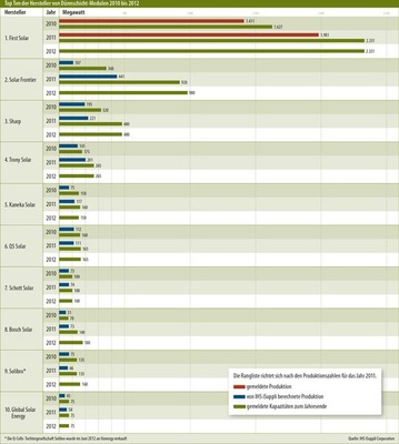 Andererseits entwickelt sich First Solar, wie viele andere Unternehmen derzeit auch, weg vom reinen Modulhersteller hin zum Systemanbieter. „Dieser Schritt wird zum Beispiel im US-Markt deutlich, wo First Solar sehr stark in der Projektentwicklung aktiv ist“, sagt de Haan. „Sie werden ihre Kapazitäten daher nicht mehr so stark darauf ausrichten, ihre Module möglichst kostengünstig auf dem freien Markt zu verkaufen, sondern überwiegend das eigene Installationsgeschäft damit füttern.“ Das japanische Unternehmen Solar Frontier ist der Aufsteiger der letzten zwei Jahre. Im Gegensatz zu First Solars Cadmium-Tellurid-Technologie setzt man hier auf CIS-Module. „Damit haben sie die Technologie, die über das größte Kostensenkungspotenzial verfügt“, sagt Dirk Morbitzer. „Das ist ein großer Vorteil.“ Ein weiterer Trumpf ist, dass das Unternehmen zwei sehr starke Muttergesellschaften im Rücken hat, den japanischen Konzern Showa und den Royal-Dutch-Shell-Konzern. Deren schon vor vielen Jahren getroffene Entscheidung, CIS-Produktionskapazitäten aufzubauen, hat nun im Jahr 2011 Früchte getragen. Zwischen 2010 und 2011 konnteSolar Frontier die Produktion mehr als vervierfachen und so im Ranking der größten Dünnschichthersteller von Platz fünf auf Platz zwei klettern.