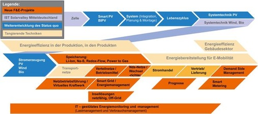 Frey ist einer derjenigen, die solch eine Unterstützung gerade aufbauen. Auch für ihn endet die Energiewende nicht bei der Produktion von Solarzellen und Solarmodulen: „Eine Perspektive haben wir nur, wenn wir uns zusammentun und die Wertschöpfungskette erweitern.“ Deshalb hat er neben seinem Job als Chef der Solar Valley GmbH auch die Vertretung des neuen Konsortiums Smart Energy Ostdeutschland unter Führung des Solarvalley Mitteldeutschland übernommen. Bisher gehören 65 Industriebetriebe, 13 Forschungseinrichtungen, zehn Hochschulen und Mitglieder aus Politik und Verbänden zum Konsortium. Weitere Partner und Akteure sind willkommen.Das Konsortium ist angetreten, um die Energiewende voranzubringen und die Marktteilnehmer im Osten am Erfolg zu beteiligen. Eine wichtige Aufgabe angesichts der Krise der Solarindustrie. Schließlich geht es darum, sich die Kuchenstücke zu sichern, die gerade die ostdeutschen Regionen mit ihren Solarstandorten den etablierten konventionellen Energieversorgern und -ausrüstern abgerungen haben. Dazu sollen Wirtschaft, Wissenschaft und Bildung besser verzahnt werden.