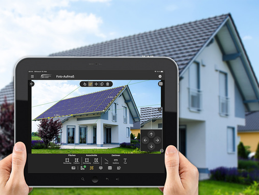 Die App Digitales Foto-Aufmaß ermöglicht eine schnelle und präzise Vermessung des Gebäudes. So kann der Nutzer bereits vor Ort dokumentieren und erste Abschätzungen liefern. Zusätzlich spart es Zeit in der Angebotsphase und ermöglicht, auszuführende Tätigkeiten vorab zu planen. Schwer zugängliche Bereiche wie Dachflächen können festgehalten werden und Aufmaße für Photovoltaik-Anlagen sind somit problemlos machbar.