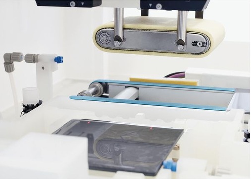 Auf den ersten Blick ist kaum zu verstehen, warum die Automatisierer erst jetzt verstärkt mit ihren Lösungen für das Waferseparieren punkten können. Ein Grund ist, dass sie umdenken mussten, um mit Randbedingungen wie abrasiven Partikeln in feuchter Umgebung, dünnen und spröden Siliziumscheiben sowie hohen Adhäsionskräften erfolgreich umzugehen. „Es gab Projekte mit dem Ziel, die Arbeit der Werker so gut wie möglich nachzubilden“, erinnert sich Reddig. Heraus kamen komplexe Anlagen mit sehr viel Sensorik und Aktorik im Arbeitsraum. Das erwies sich nicht nur als störanfällig. Es erschwerte auch den Zugriff von außen im Störungsfall und ließ die Wartung aufwendig werden. Die möglichen Abnehmer wollten sich damit nicht anfreunden und ignorierten weitgehend die automatische Alternative. Um ihr Interesse zu wecken, wurde die Ingenieurskunst der Maschinenbauer auf eine für sie eher ungewohnte Art herausgefordert: Statt in die Anlagen so viel Hightech wie möglich einzubauen, galt es zu vereinfachen. Weniger brachte hier oft mehr.