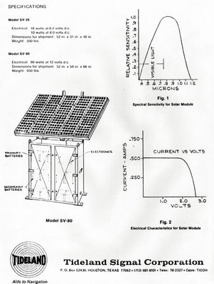 Draußen auf See, „inmitten von hunderten von Ölplattformen“, die sich so weit erstreckten, wie er sehen konnte, nahm der Reporter sein Fernglas heraus. Er entdeckte, dass jede Plattform mit einem viereckigen Panel ausgestattet war, „etwa vier mal zwei Fuß groß, das silbrige Kreise umschloss“. Das waren natürlich Photovoltaikmodule. Wie sich herausstellte, waren die 20.000 bis 25.000 Lichter, die die Photovoltaik im Golf betrieb, ein größeres Geschäft als alle anderen, die die U.S. Coast Guard hätte anbieten können. „Wenn man nur einen Teil dieses Markts beherrschte“, stellte Priestley fest, „lief das Geschäft recht gut“. Und weil sowohl Tideland Signal wie auch Automatic Power ihre Geschäftstätigkeit auf mehr als 100 Länder ausgedehnt hatten, verbreiteten sich PV-betriebene Navigationshilfen in der ganzen Welt.