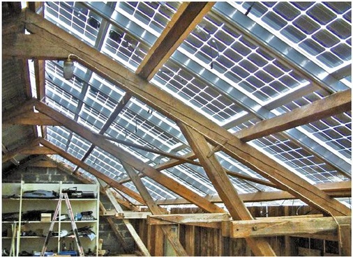 Galaxy Energy stellte sein Indachsystem erstmals auf der Intersolar 2009 vor. Die bisher größte Anlage mit diesem System hat eine Leistung von 155,8 Kilowatt und ging Ende vergangenen Jahres ans Netz. In Hohenfurch bei München ließ ein Unternehmer 636 Module in sein Dach montieren. Galaxy preist sein System besonders für die Sanierung von Eternitdächern an. Auf asbesthaltigen Dächern dürfen bisher keine Photovoltaikanlagen gebaut werden. Der Hersteller empfiehlt in diesem Fall, das alte Dach bis auf das Grundgerüst, die horizontal verlaufenden Pfetten, abzubauen. „Direkt auf die Pfetten kann dann das Modul mit Aluminiumsparren von Galaxy Energy montiert werden“, sagt Eva Maria Schöll. Sind die vertikal verlaufenden Sparren im Dach noch gut erhalten, kann das System auch darauf montiert werden.