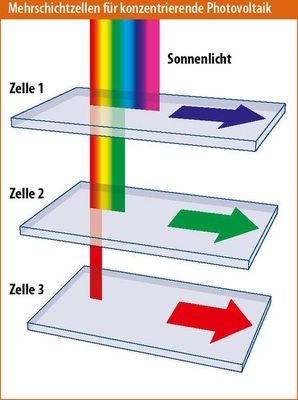 Ein drittes Konzept für die CPV-Zellen der Zukunft setzt auf mehr als nur drei unterschiedliche Bandlücken. Theoretischen Berechnungen zufolge liefern drei Schichten Maximalwirkungsgrade von 50 Prozent, sechs Schichten 56 Prozent und 32 Schichten 72 Prozent. Und auch was bei der praktischen Umsetzung herauskommen könnte, liegt der Einschätzung des NREL-Wissenschaftlers Barry Friedmann nicht so weit davon entfernt. „Historisch betrachtet haben Zellen aus Verbindungshalbleitern immer 80 bis 90 Prozent ihres theoretischen Wirkungsgrades erreicht“, berichtet er im Standardwerk „Handbook of Photovoltaic Science and Engineering“.