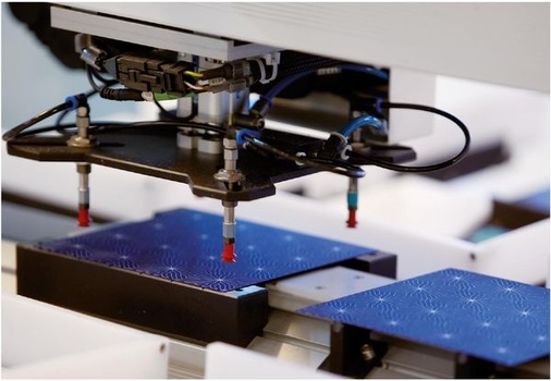 Seine volle Stärke könne dieser Zelltyp aber besonders dann ausspielen, wenn es darum geht, die einzelnen Zellen zu Modulen zu verbinden. Bei konventionellen Modellen verbindet man die Einheiten mit Hilfe von angelöteten Kupferbändchen. Auf diese Weise entstehen sogenannte Strings, die untereinander wieder zu Arrays verknüpft werden. Das Anlöten der Kontakte ist zeitaufwändig und setzt die dünnen Zellen einer hohen thermischen Belastung aus. Außerdem müssen die Zellen bei dieser Art der Kontaktierung einen gewissen Abstand zueinander einhalten. Bei Rückkontaktzellen fallen diese Nachteile alle weg. Der Schlüsselbegriff heißt „Pick and Place“.