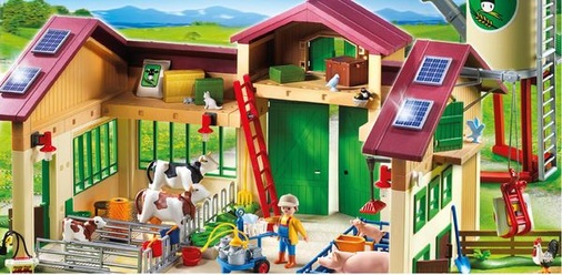 „Wir versuchen, moderne Spielthemen so realitätsnah wie möglich darzustellen“, sagt dazu Playmobil-Entwicklungsleiter Bernhard Hane. Auf Bauernhöfen seien häufig Photovoltaikanlagen zusehen, daher habe Playmobil auch in die Spielzeugvariante Solarzellen integriert. Erneuerbare Energien sind bei Playmobil immer wieder ein Thema. Für die ebenfalls mit Solarzellen bestückte Raumstation E-Rangers Future Base und den spielerischen Umgang mit den Themen Energiegewinnung und Umweltschutz bekam der Hersteller, Geobra Brandstätter aus Zirndorf bei Nürnberg, 2011 auf der Spielwarenmesse in Nürnberg den ToyAward.
