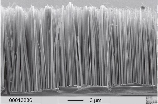 Jos Haverkort hat einen verwegenen Plan. Der Forscher von der Technischen Universität Eindhoven in den Niederlanden will Solarzellen „Haare“ aus nanometerdünnen Halbleiterdrähten wachsen lassen. „Mit solchen Zellen lassen sich, unterstützt von Sonnenlichtkonzentratoren, Spitzenwirkungsgrade von über 65 Prozent erreichen“, behauptet er. Die Nanodrahtzellen haben im Vergleich zu klassischen Dünnschichtzellen gleich mehrere Vorteile: Sie schlucken mehrSonnenlicht und – wenn jedes Haar aus mehreren Halbleitermaterialien besteht – auch ein besonders breites Spektrum. Außerdem kommen sie mit weit weniger Material aus und sind deshalb deutlich billiger. Bisher ist es nur ein Plan, doch der kam bei der niederländischen Regierung so gut an, dass sie Haverkort und seinen Kollegen Gert Verborg und Erik Bakkers gut zwei Millionen Euro zur Verfügung gestellt hat. „Wir dürfen den Anschluss an diese Entwicklung nichtverpassen“, heißt es in einer Pressemitteilung. Die Sorge hat Gründe, denn die Entwicklung der Nanodrahtzellen findet heute vor allem in Amerika statt. Hier laufen schon lange viele Projekte, wenn auch die Wirkungsgrade zurzeit nur um fünf Prozent liegen.