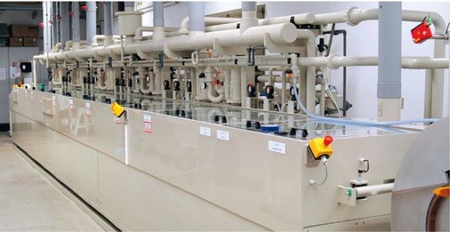 In der gegenwärtigen Entwicklungsphase startet der Zellherstellungsprozess im Labor. Hier stehen alle Anlagen zur Herstellung von flexiblen CIGS-Dünnschichtzellen auf Basis von Kupfer, Indium, Gallium und Selenid en miniature. „Unsere Anlagen sind größtenteils Eigenentwicklungen, teilweise auch Eigenbauten“, sagt Theilig. Erst wenn die Parametereinstellung im Labor zufrieden stellende Ergebnisse bringt, wird sie auf eine Pilotanlage übertragen, deren komplette Montage in den nächsten Monaten abgeschlossen werden soll. So lange müssen die Techniker und Ingenieure zwischen Labor und Pilotanlage pendeln, immer wieder das Rollenband in handliche Stücke zerschneiden und später wieder verschweißen. Der Zellenaufbau beginnt in einer Sputteranlage, die noch nicht Bestandteil der Pilotlinie ist. Hier wird auf die 35 Millimeter breiten Edelstahl-Bandstücke eine Sperrkontaktschicht aus Molybdän abgeschieden.Im nächsten Raum rollt das nun wieder verschweißte graue Band mit einer Geschwindigkeit von 0,5 Meter pro Minute durch die zwölf Meter lange Reihe von Galvanik- und Reinigungsbecken, wo sequentiell die Halbleiterschichten Indium, Kupfer und Gallium aufgetragen werden. Die Kunst der Galvaniker und Elektrochemiker liegt darin, die Anlage stabil zu fahren und die Elektrolyte so einzustellen, dass während der gesamten Laufzeit die Abscheidung homogen bleibt. Danach wird im Labor durch Selenisierung die CIGS-Schicht komplettiert. Ein Mitarbeiter spannt den beschichteten Streifen ein, der dann durch die Anlage gezogen und unter Normaldruck bedampft wird. Danach wird aus den „Sandwichschichten“ in einem mehrstufigen Ofenprozess der endgültige Halbleiter gebacken. Im Unterschied zu anderen Herstellern, die die Selenisierung mit dem Ofenprozess kombinieren, wendet PVflex eine einfache Technologie an und verzichtet auch hier auf einen Vakuumprozess. In einem nasschemischen Prozess setzt sich anschließend die Cadmiumsulfid-Pufferschicht ab. Dann wird noch einmal gesputtert, um die leitende Fensterschicht aus Zinkoxid aufzubringen, an der die Zelle kontaktiert wird. Das geschieht per Siebdruck einer Gitterstruktur.Zwar setzt PVflex für das Auftragen der Molybdän-Sperrkontaktschicht und der Zinkoxid-Fensterschicht noch Vakuumverfahren ein, doch schon allein durch die vakuumfreie Prozessführung bei der Herstellung der Halbleiterschicht rechnet das Unternehmen im Vergleich zu anderen Dünnschichttechnologien mit Einsparungen von bis zu 50 Prozent bei den Investitionskosten.Um die Auswirkungen der systematischen Parametervariation zu bewerten, testen die Mitarbeiter die Zelle nach jedem Prozessschritt. Täglich werden mehrere Probenserien gefahren und sofort ausgewertet, um Prozess und Wirkungsgrad zu optimieren. Wenn in einigen Monaten die restlichen Pilotanlagen kommen, kann ein kontinuierlicher Bandprozess gefahren und die Prozessparameter können noch schneller variiert werden. Wie hoch der mit dem Verfahren erreichte Wirkungsgrad aktuell ist und wann die angestrebten acht Prozent voraussichtlich erreicht werden, gehört jedoch noch zu den Betriebsgeheimnissen von PVflex.