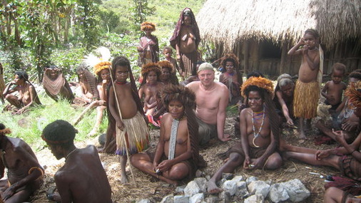 Auf 2.000 Metern Höhe schlängelt sich der Fluss durch das von ihm gegrabene Tal. Kein Staudamm zähmt seine Wildheit. Hier gibt es keine Straßen, nur noch steile, vom Regen glitschige Wege, die das Fortbewegen gefährlich machen. Wenn hier etwas passieren würde, auf fremde Hilfe wäre nicht zu hoffen. Es gibt schon seit vier Tagen kein Mobilfunknetz mehr. Um den Akku zu schonen, habe ich das Handy irgendwann ausgestellt. Auch die Akkus der Kamera gehen zur Neige. Ich bin auf einem Trip in die Steinzeit. Beim Volk der Dani, im Baliental, umgeben von hohen Bergen, in Westpapua. In den Dörfern gibt es keinen Strom, keine Wasserversorgung oder Kanalisation. Wenn es dunkel geworden ist, sitzen die Menschen gemeinsam in der Küchenhütte am offenen Feuer. Während die Jüngeren bereits T-Shirts und Shorts tragen, sind die Älteren noch traditionell bekleidet, das heißt, fast nackt. Ich erzähle meinem Guide, dass ich nachts nicht mehr fotografieren kann, der Blitz verbrauche zu viel Energie. „Morgen kannst du die Akkus aufladen“, sagt Sadrak Asso. „Da gibt es Strom von einer Solaranlage.“ Ich schaue ihn ungläubig an. „Hier, in dieser Gegend? Bei den Dani?“ Nach einem weiteren Trekkingtag kommen wir in dem Dorf Kilise an. Wie die anderen Ansiedlungen auch besteht Kilise aus einer Männerhütte, einer Familienhütte, in der die Frauen und Kinder wohnen, dazu aus einer Hütte mit Kochstelle und Schweinekoben.