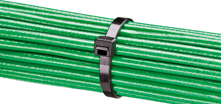 Panduit stellt die neue Kabelbinderserie PLT4S-M6120 vor, wobei der Zusatz 612 für das UV-beständige Material Nylon 612 steht. Die Kabelbinder sind beständig gegen chemische Korrosion, selbst wenn sie Salzen, Kohlenwasserstoffen, Basen oder korrosiven Stoffen wie Zinkchlorid oder verdünnten Säuren ausgesetzt sind. Sie halten Sonneneinstrahlung, saurem Regen und Witterungen stand. Darüber hinaus eignen sich die PLT4S-M6120 für Außenanwendungen zwischen minus 60 und plus 90 Grad Celsius. Im Prüflabor wurde unter diesen rauen Bedingungen eine Lebensdauer von 20 Jahren testiert. Deshalb gibt Panduit eine Garantie für 20 Jahre. Die schwarzen Kabelbinder sind einteilig aufgebaut mit einem Verriegelungskeil sowie einer gebogenen, verjüngten Spitze und lassen sich mit weniger Kraft einführen.