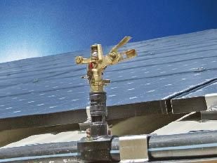 Sybac Solar sammelt derweil noch Erfahrungen mit seinen Berieselungsanlagen. Auch die Frage, ob sie sich energetisch lohnen, lässt sich noch nicht abschließend beantworten. Wie bei der Schätzung des Wasserbedarfs gehen zu viele Unbekannte in die Rechnung ein. Hierfür müssen die Pumphöhe und die Anzahl der Pump-Betriebsstunden bekannt sein, letztere lässt sich wieder nur durch langjährige Klimadaten schätzen. Geschäftsführer Watkins rechnet aber mit einer positiven Energiebilanz. Das zeige eine einfache Rechnung: Für eine 60-Kilowatt-Anlage benötigt er für die Kühlung 1,5 Kilowatt Pumpleistung. Bei acht Prozent Mehrertrag spielt die den Pumpstrom locker wieder ein. Watkins ist von der Idee jedenfalls überzeugt. Vier Kunden haben sich schon für eine Berieselungsanalge von Sybac Solar entschlossen und auf der firmeneigenen Solarstromanlage sind die Wassersprenger auch im Einsatz.
