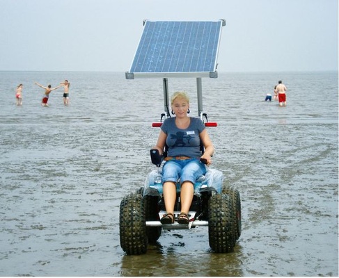 Entwicklung und Produktion des Cadweazles ist natürlich keine Magie, sondern eine Leistung der Kieler Firma Cadkat. Das Unternehmen ist eigentlich auf korrosionsfreie Slipwagen für diverse Wassersportgeräte spezialisiert. Aber was Katamarane, Jollen oder Tretboote zuverlässig über schwieriges Gelände wie Schlamm und Sand transportiert, ist auch für Menschen geeignet, die sich sonst wegen eines Handicaps nicht frei in der Natur bewegen könnten. Der Cadweazle ist im Prinzip ein Geländerollstuhl erster Klasse. Seine patentierten Eurotrax-Ballonräder verhindern das Einsinken auf weichem Untergrund wie Schnee, Schlick und Sand, aber auch für andere Untergründe sind spezielle Reifen oder Spikes erhältlich. Der stabile Rahmen ist korrosionsgeschützt, Polster, Lehnen und Gurte sind ein durchdachtes System. Seine zwei Elektromotoren mit insgesamt 600 Watt werden von einem mit 90 Amperestunden recht üppigen Batteriepaket betrieben. Die servounterstützte Lenkungseinheit sorgt dafür, dass in jeder Fahrsituation alle vier Räder Bodenkontakt haben; eine elektromagnetische Motorbremse bringt neben etlichen weiteren technischen Details Sicherheit. Und bedienen lässt sich der Cadweazle, der bis zu sechs Kilometer pro Stunde schnell und daher in Deutschland zulassungs-, versicherungs- und führerscheinfrei ist, ganz einfach über einen Joystick.