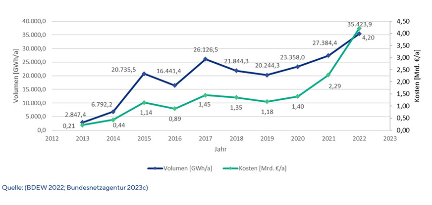 Das Engpassmanagement stieg 2022 im Vergleich zu 2021 um 19 Prozent von 27.523 Gigawattstunden auf 32.772 Gigawattstunden. Die Kosten beliefen sich 2022 auf 4,2 Milliarden Euro. Davon entfielen zwei Drittel (2,69 Milliarden Euro) auf Redispatch. Im Vergleich zu 2013 sind die Gesamtkosten um 1.900 Prozent gestiegen.