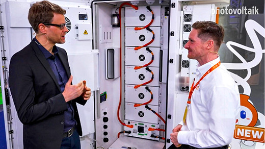 PV on Tour: Solis stellt die neue Evercore-Reihe vor. Sie kombiniert Speichersysteme mit 100 Kilowatt und 120 Kilowattstunden mit einem Hybridwechselrichter für 50 oder 60 Kilowatt. Die größere Variante kann bis zu 261 Kilowattstunden speichern. Produktexperte René Gelfert erläutert, wie Wechselrichter, Batterie und Energiemanagementsystem ein kraftvolles Paket bilden.