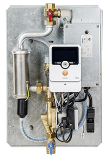Die elektrothermische Station Tubra Etherm von Tuxhorn detektiert Überschussleistungen der Photovoltaikanlage und nutzt diese zur geschichteten Beladung eines Warmwasserspeichers. Die kompakte Station zeichnet sich durch eine schnelle und stufenlose Leistungsmodulation bis drei Kilowatt aus. Die vormontierte Hydraulikeinheit kann modular an Trinkwasserspeicher und Pufferspeicher angeschlossen werden. Um den Vorrang für den Strombedarf im Haushalt zu sichern, wird die integrierte Messeinheit am Einspeisepunkt zum Netz vor dem Energiezähler installiert. Mit einer Zieltemperaturregelung belädt die Tubra Etherm den Trinkwasser- oder Pufferspeicher, indem sie den Volumenstrom der Ladepumpe anpasst. Durch die externe Beladung wird aus jedem Speicher ein Schichtenspeicher, der sofort nutzbare Wärme aus überschüssigemSolarstrom bereithält.