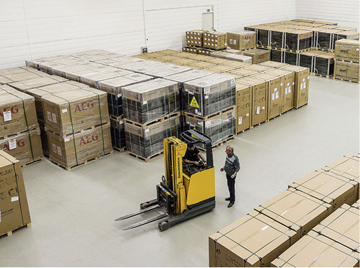EWS lagert in seinen Hallen mittlerweile mehrere Monatsbedarfe von Marken wie BYD, LG Electronics, LG Chem und Fronius ein, um kurzfristige Bestellungen ausliefern zu können.