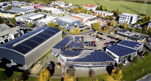 Die Solarmodule stammen von Axitec, jedes leistet 275 Watt. Insgesamt 1.400 von 25.000 Quadratmetern Dachfläche wurden belegt, um 190 Kilowatt Gesamtleistung auf die Dächer zu bringen. Die errechnete Einsparung von Netzstrom und Gas für die Heizung liegt bei rund 25.000 Euro.